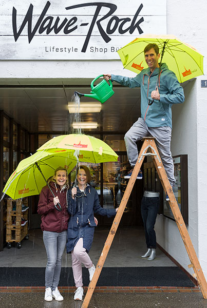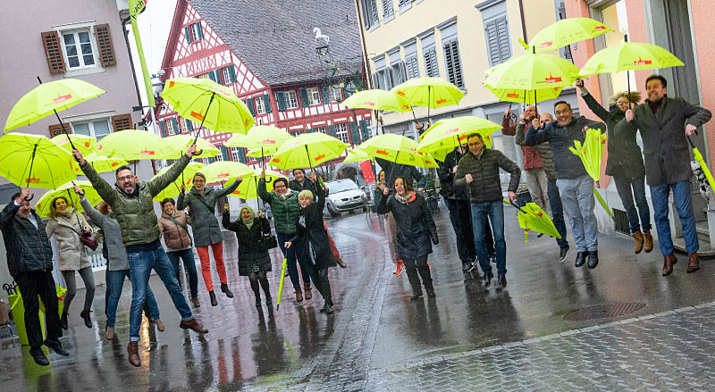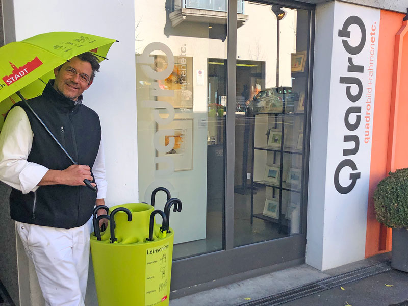 Im Herzen der Stadt Bülach bekommen Sie alles – ausser nasse Füsse. Denn wenn es regnet, benutzen Sie JETZT einfach einen Leihschirm von bülachSTADT.